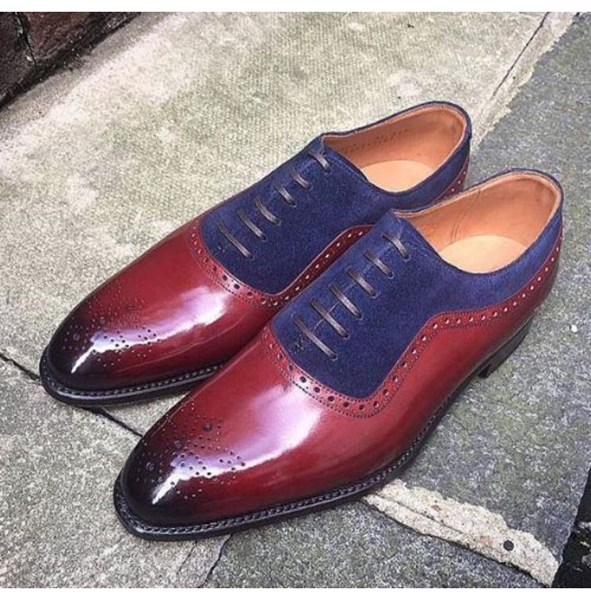 Handmade Mens Two Tone Formal Shoes, Brogue Oxford Leather Dress Shoes