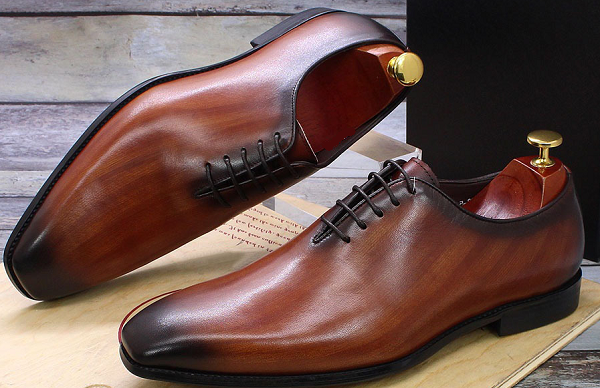 Men Oxford Wooden Brown Wholecut One Piece Real Leather Lace Up Formal Shoes