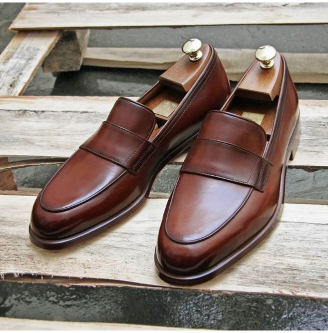Handmade Men's Dark Brown Moccasin Business Shoes, Real Leather Office Shoe