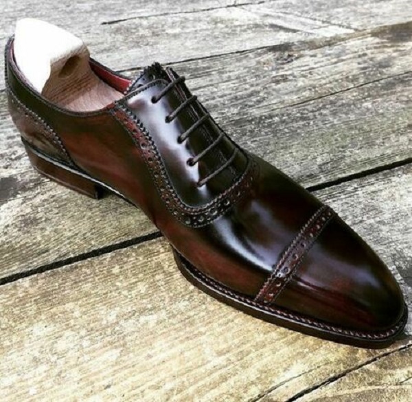 Handmade Men's Genuine Brown Leather Oxford Toe cap Lace up Shoes