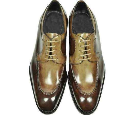 Handmade Men's Genuine Beige and Brown Leather Derby Lace up Shoes