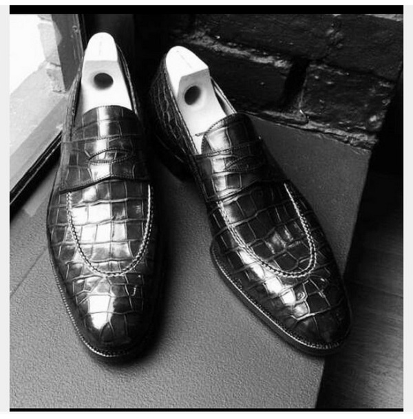 Mens Alligators Shoes, Men Black Crocodile Patterned Dress Shoes Moccasins