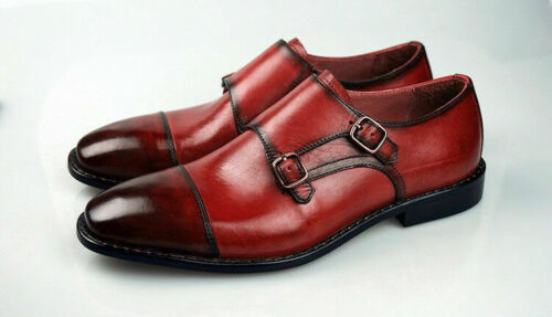 Dual Monk Style Burgundy Patina Cap Toe Genuine Leather Business Fashion Shoes