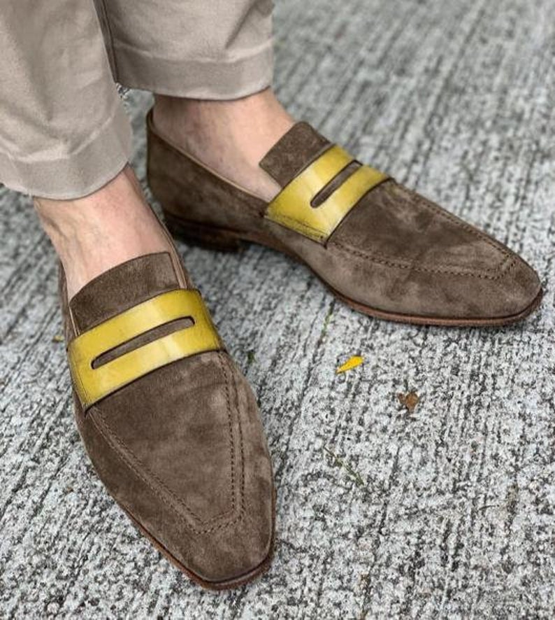 New Handmade Pure Brown Suede Leather Loafer Shoes for Men's
