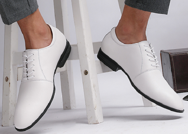 Men White Suiting Oxford Black Sole Real Leather Single Vamp Formal Dress Shoes