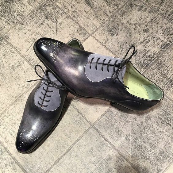 Men Two Tone Gray Black Oxford Medallion Toe Suede Leather Laceup Shoes