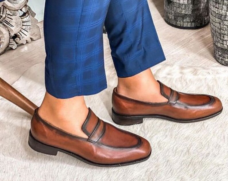 New Handmade Pure Brown Leather Loafer Shoes for Men's