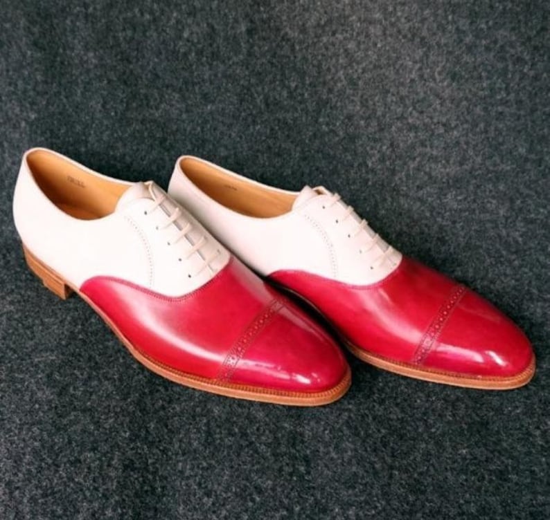 New Pure Handmade Red & White Leather Lace Up Shoes For Men's