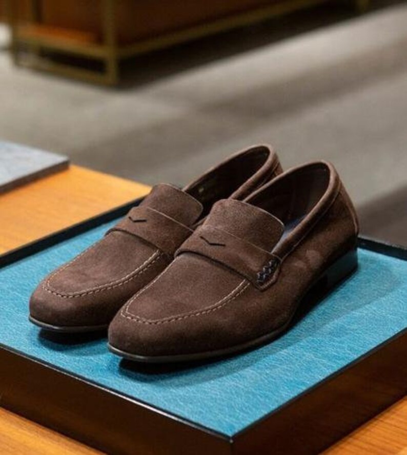 New Handmade Pure Brown Suede Leather Stylish Loafer Shoes for Men's