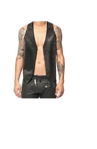 Studded PHILIPP PLEIN Leather VEST Biker Style Full Silver Studs Covered Mens