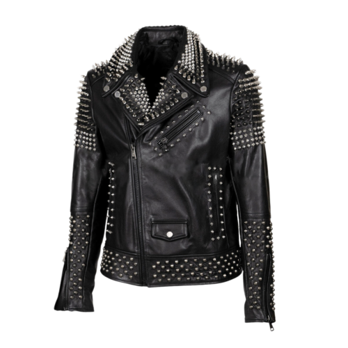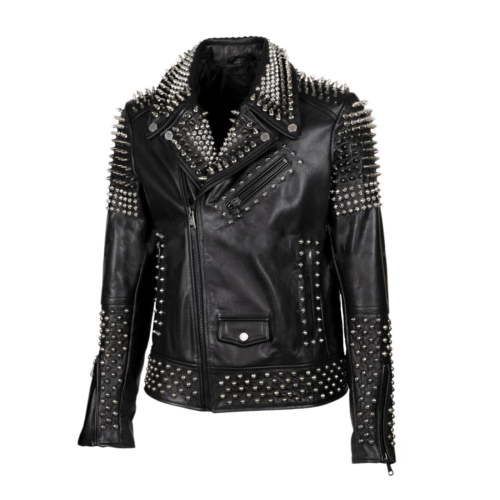 New Men's Full Black Real Leather Spiked Studded Unique Punk Leather Jacket