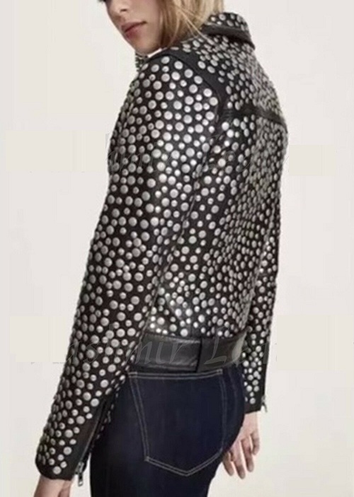 Handmade Women Black Leather Studded Biker Jacket, Womens Rock Punk Jacket