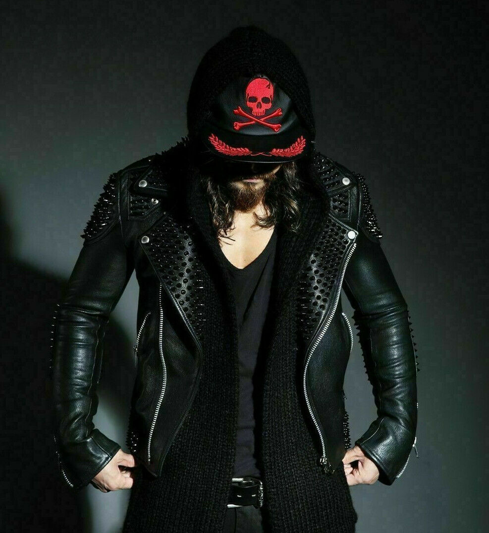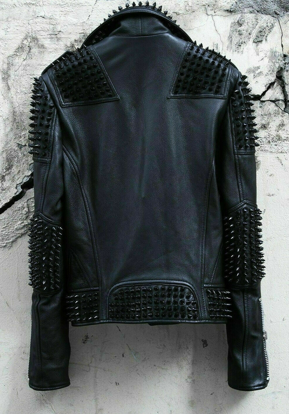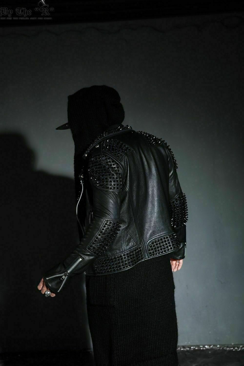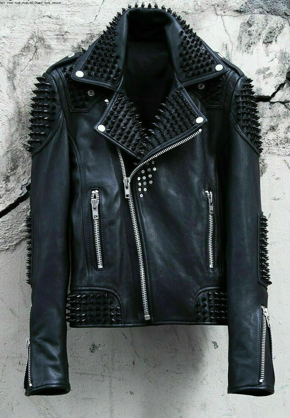 Latest Mens Full Black Heavy Metal Spiked Studded Punk Gangster Leather Jacket
