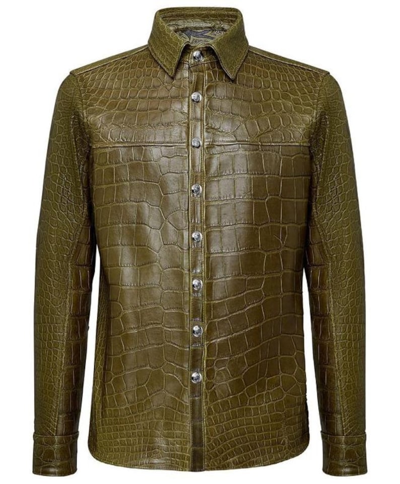 New Handmade Embossed Alligator Leather Olive Fashion Jacket For Men’s