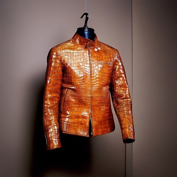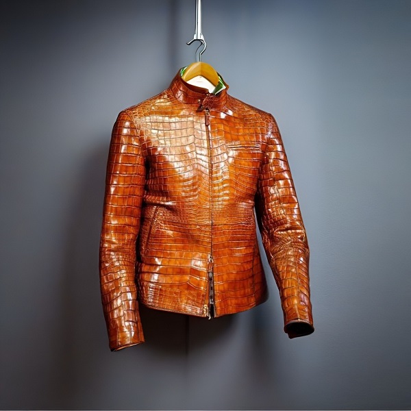 Hand Stitched Tan Crocodile Textured Leather Men's Winter Fashion Leather Coat Men Style