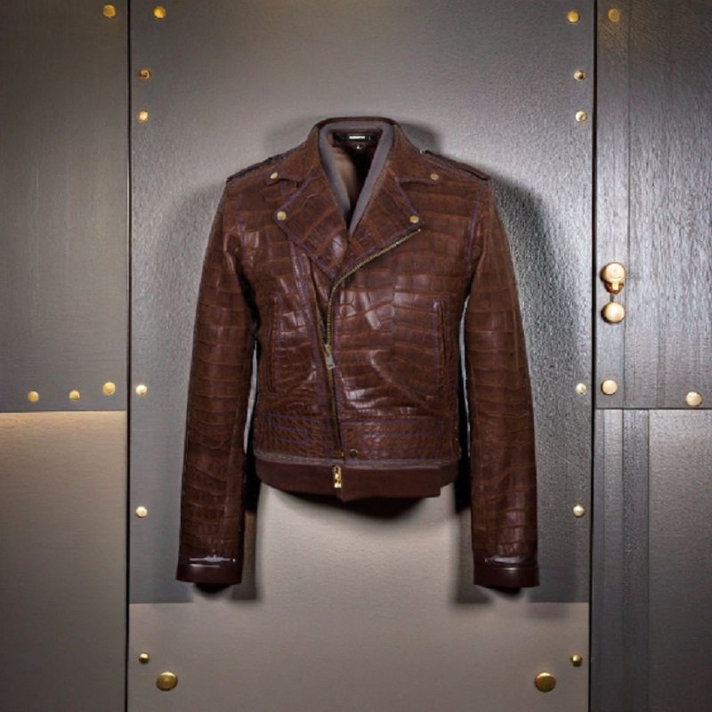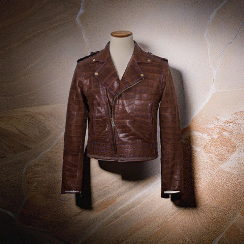 New Handmade Pure Brown Crocodile Textured Leather Winter Fashion Jacket Men’s