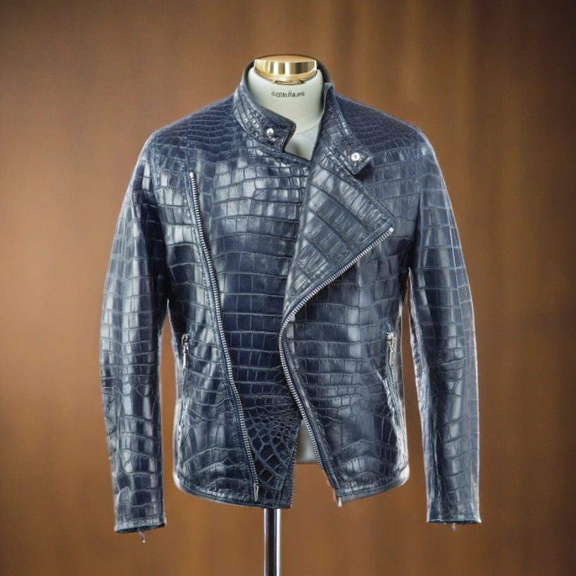 New Handmade Pure Blue Crocodile Textured Leather Winter Fashion Jacket Men’s Styles