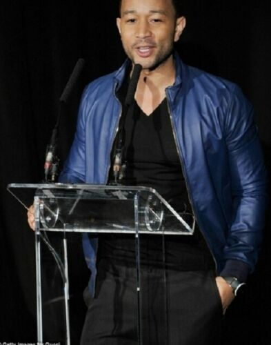 MEN LEATHER JACKET, JOHN LEGEND IN BLUE LEATHER JACKET