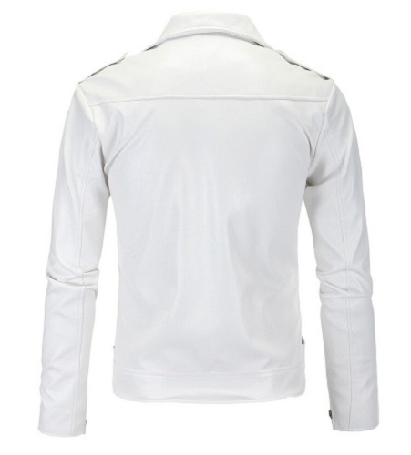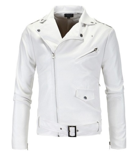 Handmade White Leather Biker Jackets, Real Leather Buckle Closure Jackets For Mens