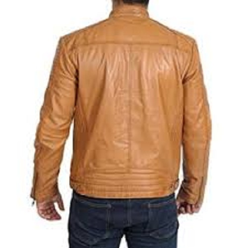 Men Tan Color Moto Leather Jacket, Real Leather Biker Moto Jacket