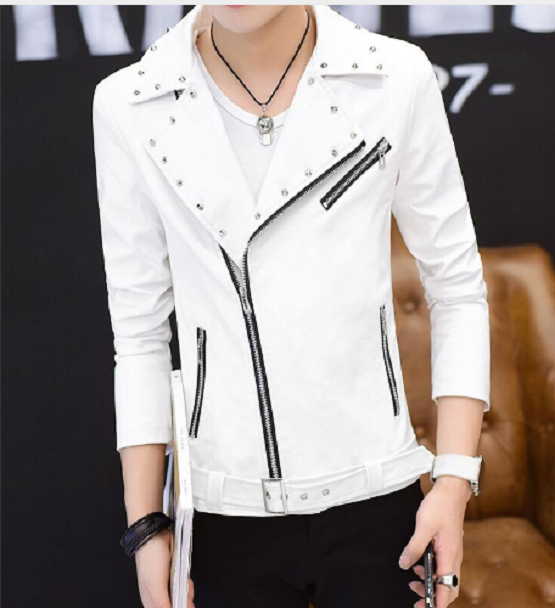 Handmade Mens White Studded Jacket, White biker jacket for mens, Mens leather jacket