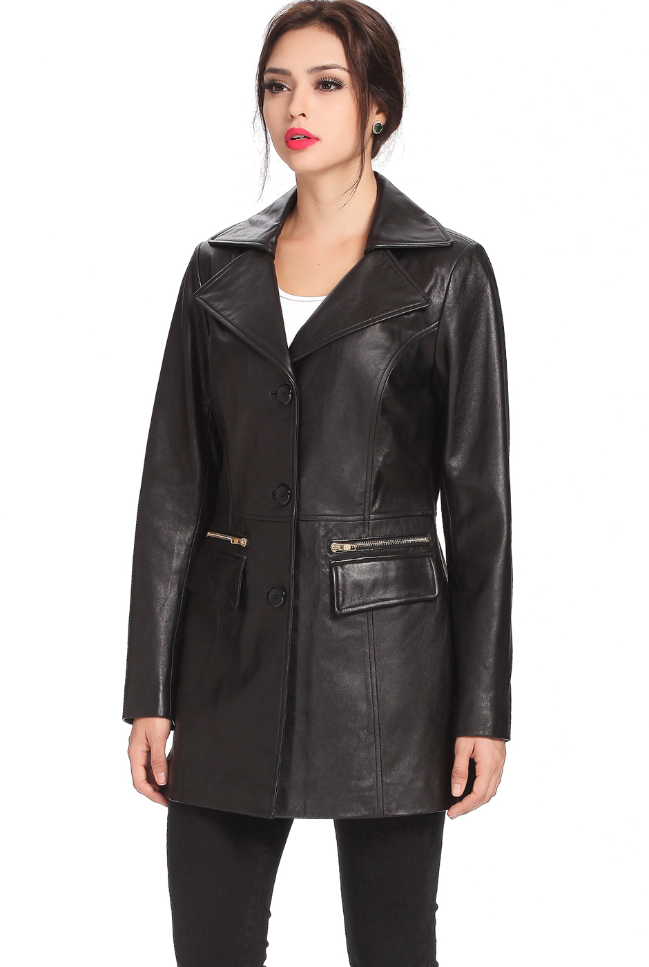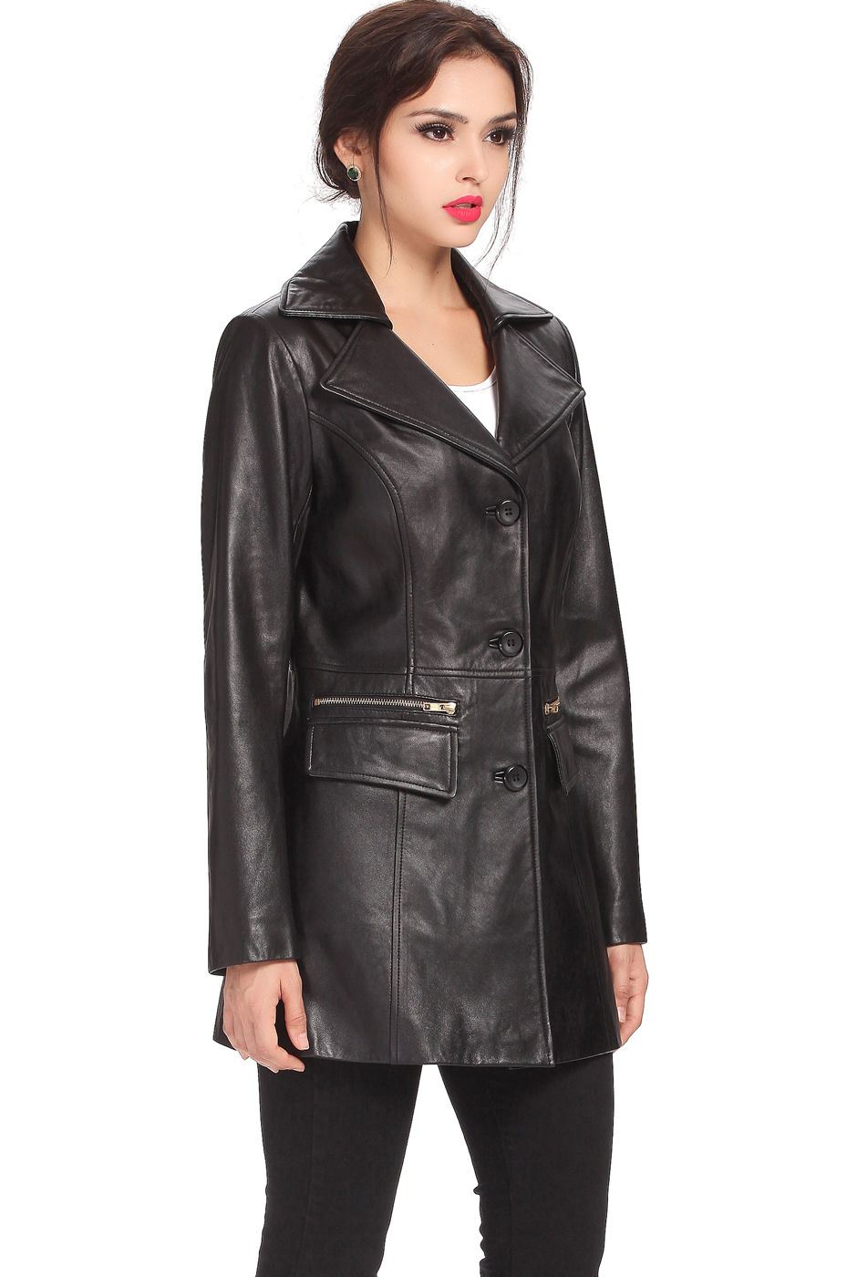 Women Black Color Genuine Lamb Skin Car Coat, Women Black Long Coat, Women leather walking coat