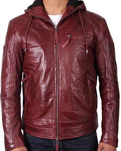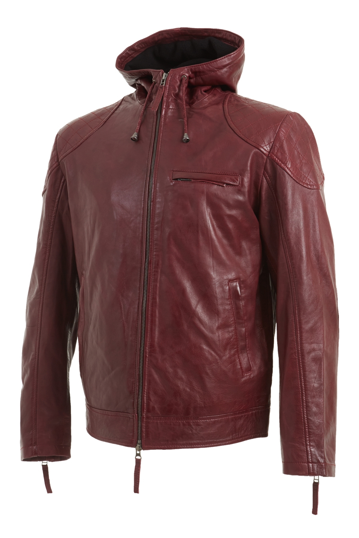 Men Maroon Hooded Leather Jacket, Men Leather Hooded Jacket, Men Jackets