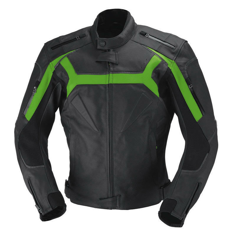 Mens Black Green Cont Motorbike Genuine Leather Safety Pads Handcrafted Jacket