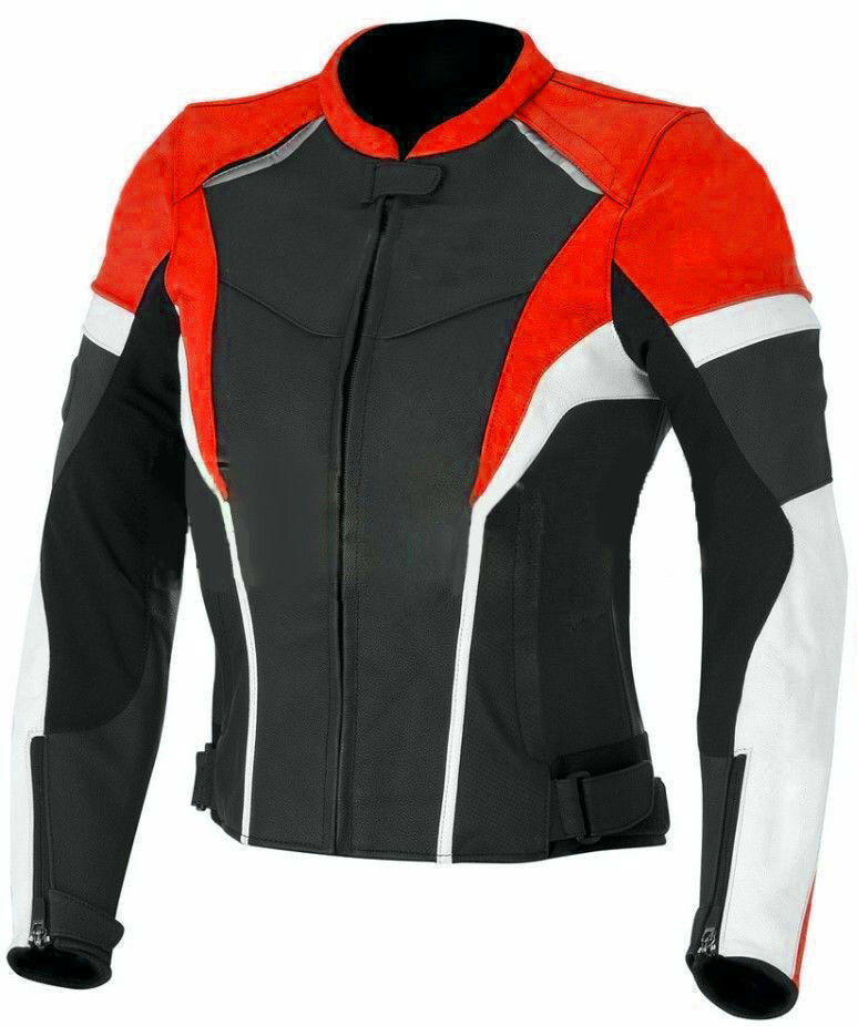Custom Men Black & Orange Biker White Stripped Genuine Leather Safety Pad Jacket