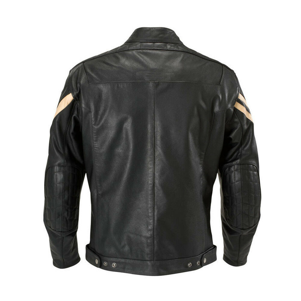 Custom Men Black Biker White Stripes Genuine Cowhide Leather Safety Pads Jacket