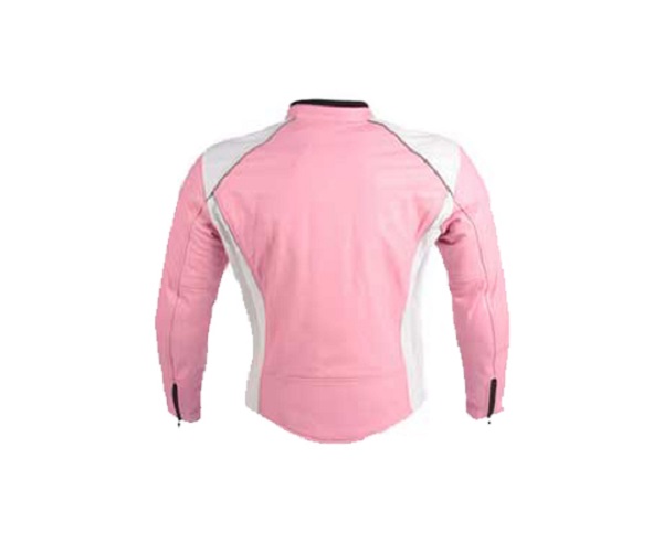 Women's Motorbike Jacket Pink and White With Leather Fastening Zipper Tab Collar