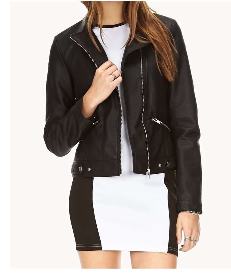 Attractive Black Jacket Women's Leather Brando Fastening Zipper Party Fashion