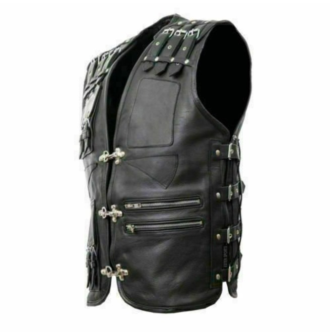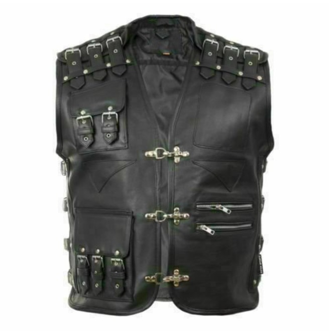 Men's Genuine Leather Heavy Buckled Rocker Motorcycle Biker Vest Waistcoat