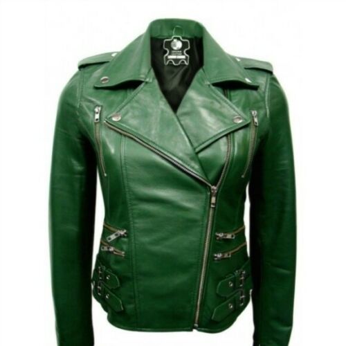 STYLISH WOMAN'S BRANDO CLASSIC GREEN LEATHER JACKET, LADIES LEATHER JACKET