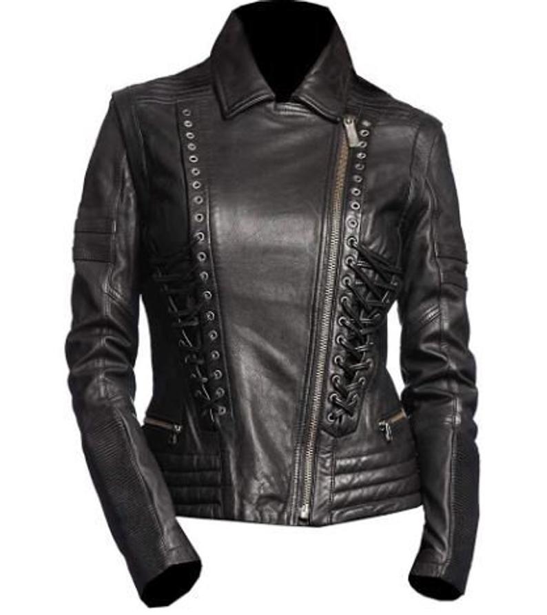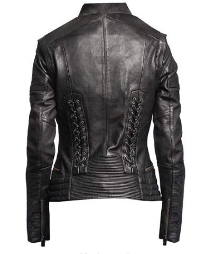 Women Black Biker Motorcycle Fashion Desinger leather jacket with 100% Polyester lining
