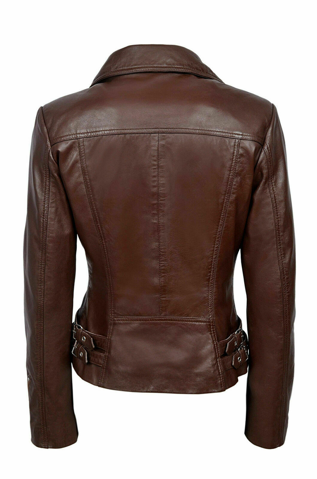 Women's Authentic 100% Lambskin Leather Brown Jacket Slim fit Biker Stylish Coat
