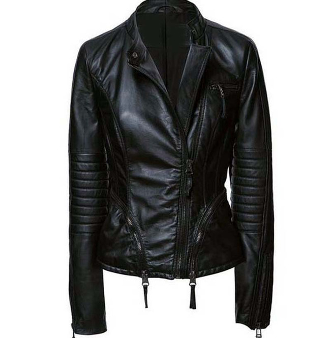 Women Black Biker Leather Jacket, Sheepskin Motorcycle Jacket for Women