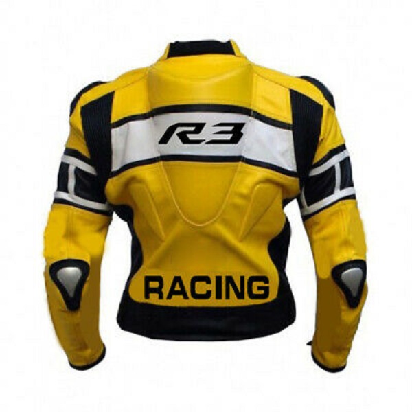 Men's Handmade Yellow Racing R3 Motorcycle Biker Real Cowhide Leather Jacket