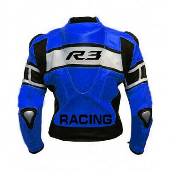 Men's Handmade Blue Racing R3 Motorcycle Biker Real Cowhide Leather Jacket