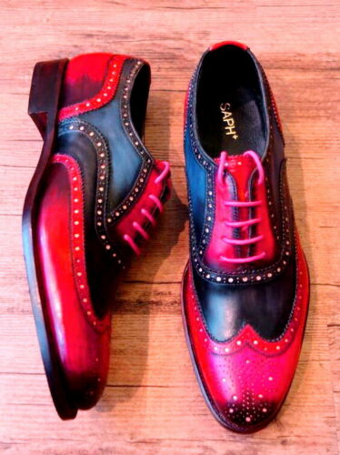 Multi Color Men's New Genuine Leather Full Brogue Burnished Toe Wing Tip Shoes