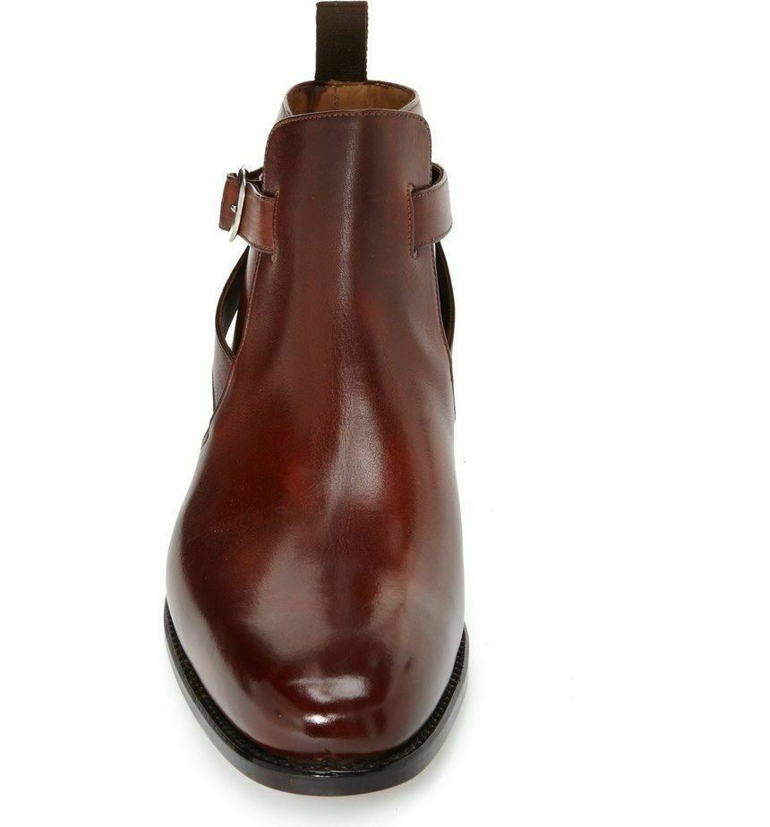 MEN'S NEW HANDMADE JODHPURS STYLE REAL LEATHER BROWN ANKLE BOOTS FOR MEN