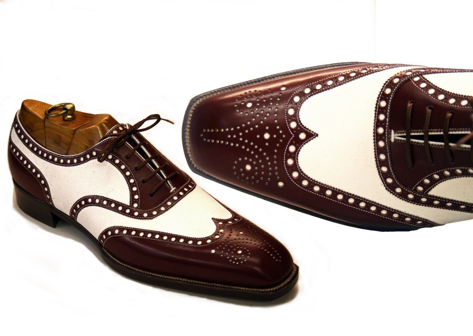 Handmade Brown Brogue Shoes Wing Tip Brogue Leather Tuxedo Casual Fashion Boot