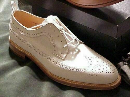 New Pure Handmade White Leather Lace up Brogue Wingtip Dress Shoes for Men's