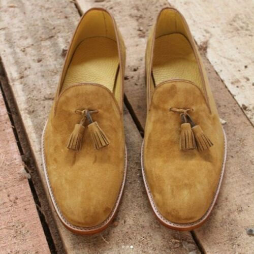 Handmade men tan formal shoes, suede moccasin shoes for men, dress leather shoes