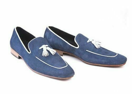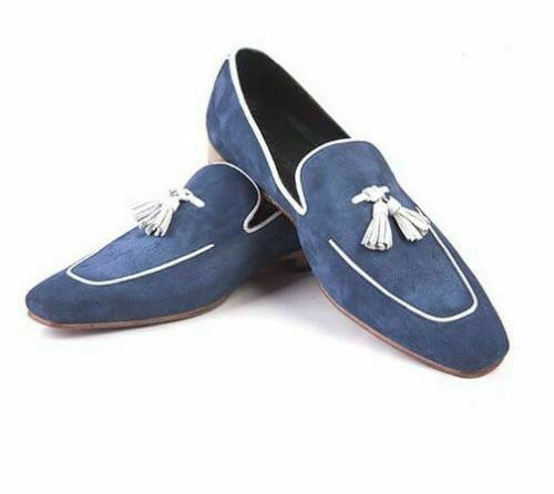 Handmade Men Navy blue Suede leather Tassels moccasins shoes loafer slip ons