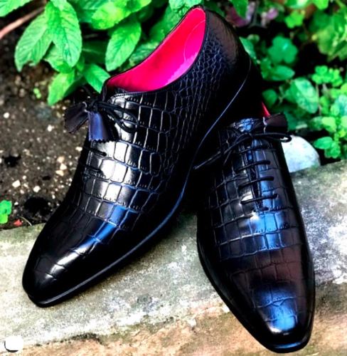 HANDMADE CROCIDILE TEXTURE DERBY SHOES, MEN SHOES, MEN CROCODILE LEATHER SHOES