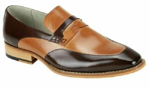 Two Tone Tan Brown Moccasin Loafer Slip Ons Vintage Leather Formal Dress Shoes