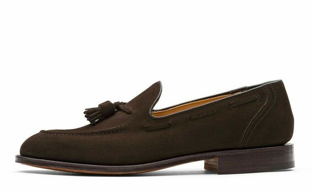 Mens Handmade Formal Shoes Tassels Brown Suede Loafers Moccasin Slip On Boots