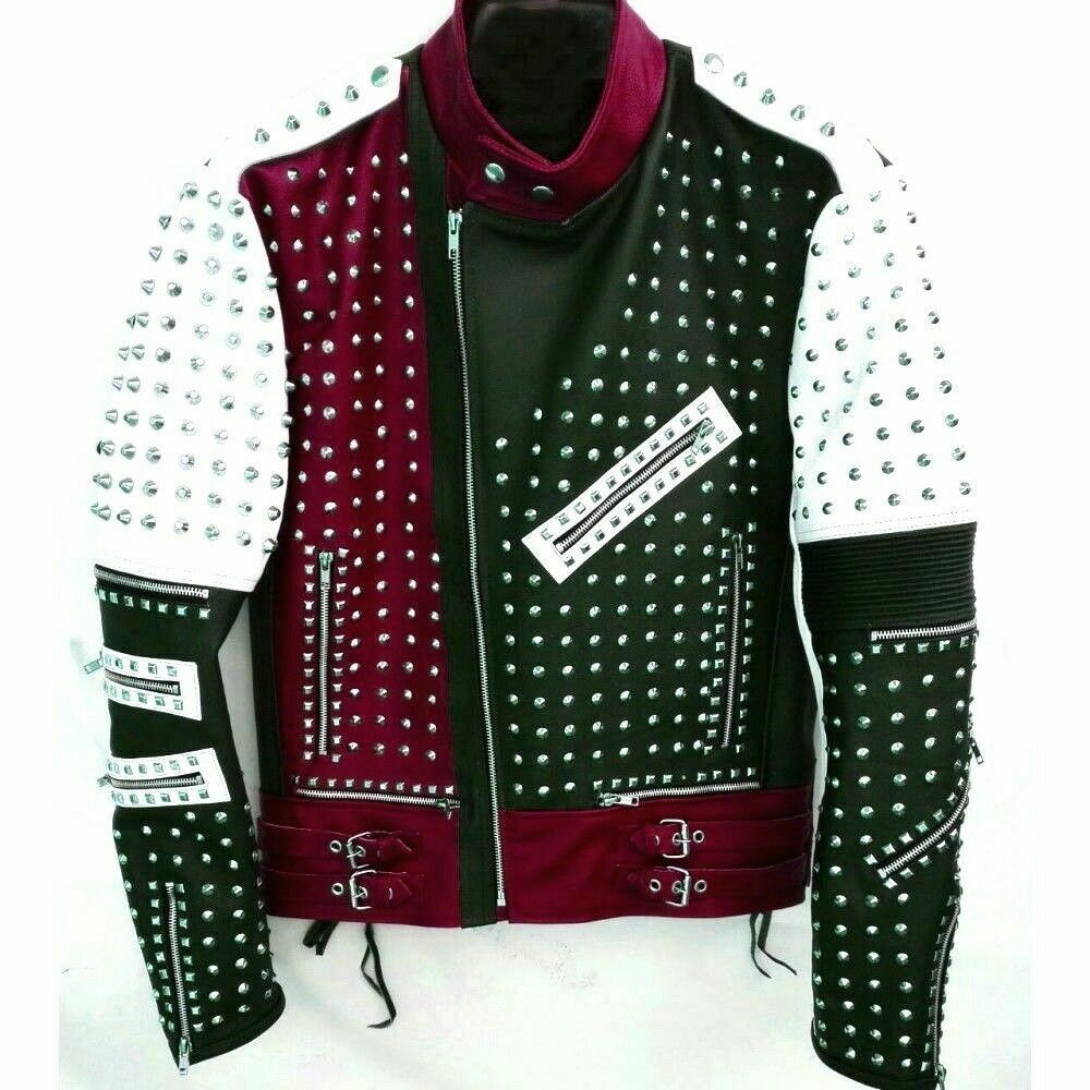 MultiColor Unique Design Full Studded Biker Leather Jacket, men leather jacket