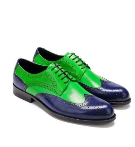 Handcraft Three Tone Full Brogue Wingtip Derby Quality Leather Party Shoes